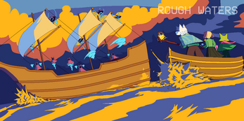 This song is what would play during their journey to the ocean. The calm part of the song would play when there's no enemies and the second part would play when there are enemies or a boss enemy. Kit and Melvin advance and get better and better at performing spells and attacking. They also collect scrolls along the way and can perform spells using the equipment Cluster gave them.