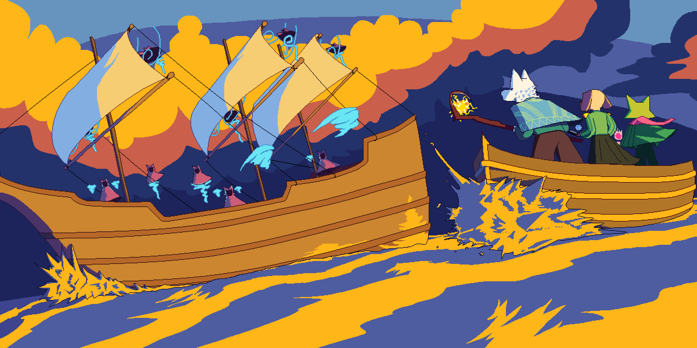 This is the music that will play while fighting CEPONE. The first half of the song is the first phase and the second half is the second phase of the boss fight. This takes place in the afternoon at the time when the sun starts to set, matching the one in the picture theme. The three mages will have to use everything they have learned on their journey to stop CEPONE from causing havoc across the lands.